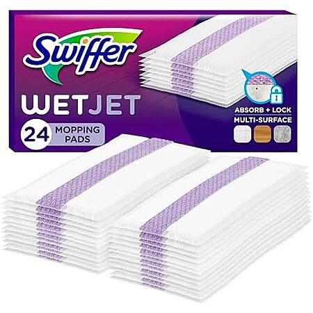 Amazon[amazon.com] has 24-Count Swiffer WetJet Hardwood Floor Cleaner Spray Mop Pad Refill for $14.94 - $2.95 - 25% when you 'clip' coupons on product page - 5% when you check out via Subscribe & Save = $7.50. Shipping is free with Prime or on $35+ orders.