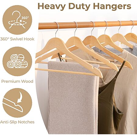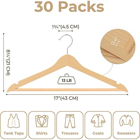 Model: GRANNY SAYS Clothes Hangers for Closet, 30 Pack Wood Hanger, Heavy Duty Wooden Hangers for Coats, Suits, Pants, Natural Wood Color