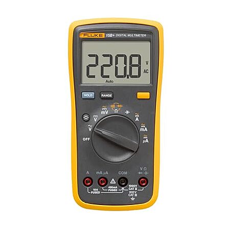 Model: Fluke 15B+ Digital Multimeter, for Electrical Applications, Measures AC/DC Voltage and Current Measurements up to 1000V and 10A, Along with Resistance, Continuity, Diode, and Capacitance Capabilities