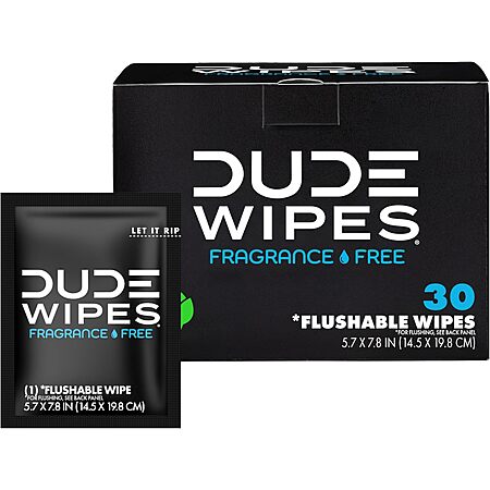 30-Count Dude Wipes Fragrance Free On-The-Go Flushable Personal Wipes $3.11 w/ S&S + Free Shipping w/ Prime or on orders over $35