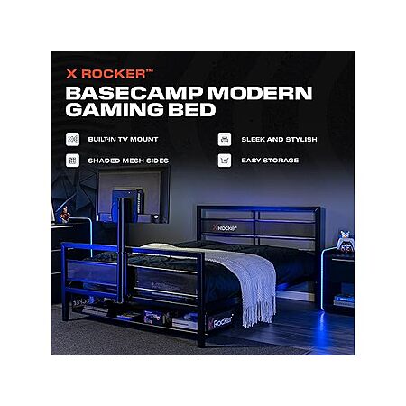 X Rocker Basecamp Gaming Bed w/ Rotating TV Mount & Vented Console Storage (Black, Full Size) $120 + Free Shipping w/ Prime