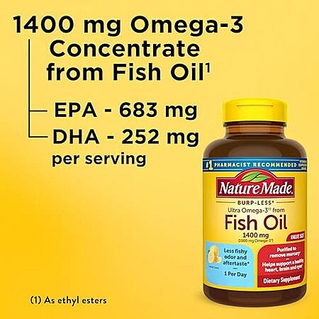[SnS, AC] $5.39* | 90-Ct Nature Made Burp Less Ultra 1400mg Omega 3 Fish Oil Softgels at Amazon