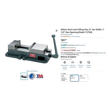 Wilton Verti-Lock Milling Vise, 6" Jaw Width, 7-1/2" Max Opening (Model 1275N) $714.48 w/coupon