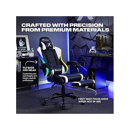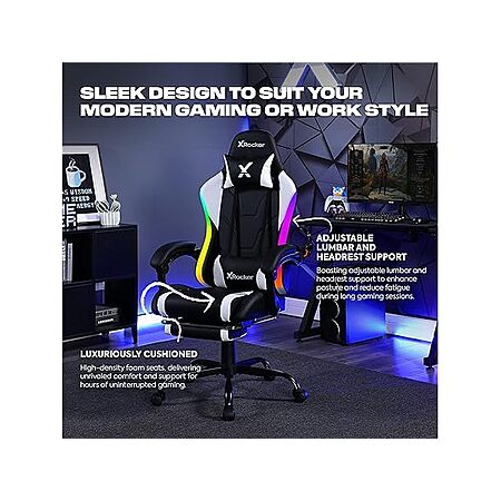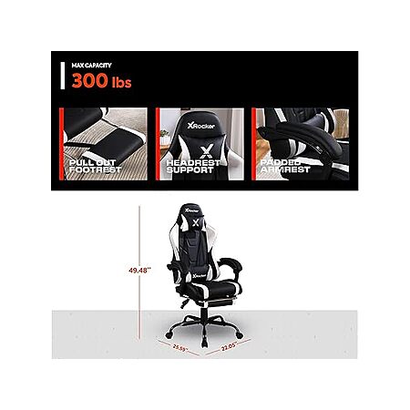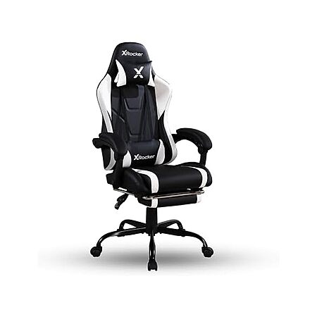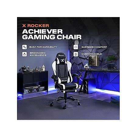 $79.99*:X Rocker Achiever Gaming Chair, Ergonomic Adjustable Desk Chair for Computer Gamers, Black & White, with Wheels at Woot!