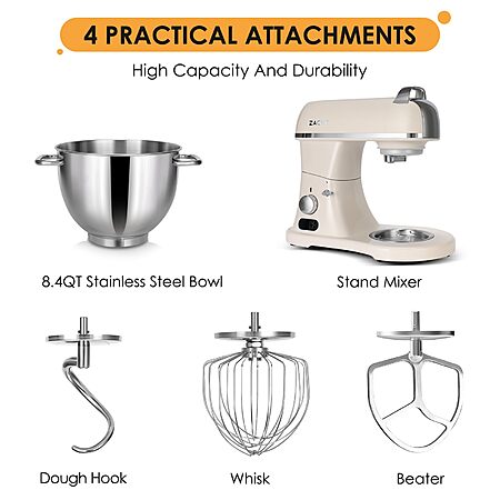 8.4QT Commercial Stand Mixer 800W with Aluminum Die Casting Mixers Kitchen Electric Stand Mixer with Stainless Steel 8L Bowl, Dough Hook, Whisk and Beater $384
