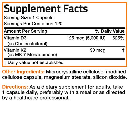 Model: Bronson Vitamin K2 (MK7) with D3 Supplement Non-GMO Formula 5000 IU Vitamin D3 & 90 mcg Vitamin K2 MK-7 Easy to Swallow Vitamin D & K Complex, 120 Capsules