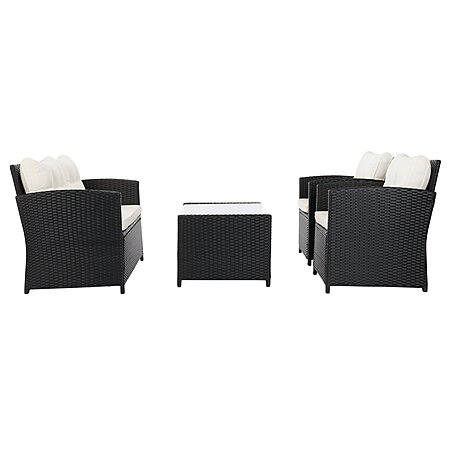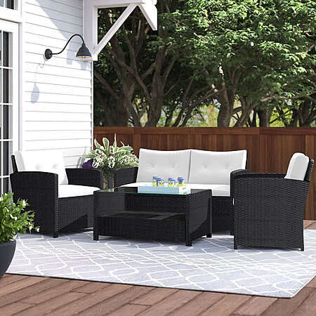 4-Piece Brayden Studio Anyuta Wood Patio Conversation Sofa & Table Set w/ Cushions (Black Frame/White Cushion) $315.99 + Free Shipping
