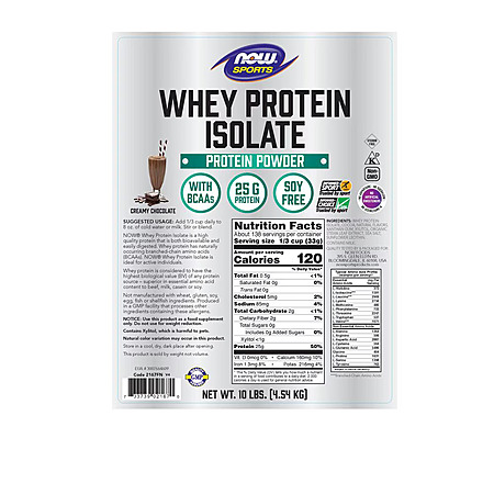 10-Lb NOW Sports Whey Isolate Protein Powder (Creamy Chocolate)