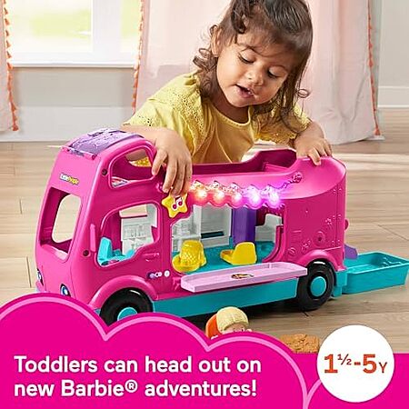 $29.99 | Fisher-Price Little People Toddler Toy Barbie Little Dreamcamper RV Playset at Amazon