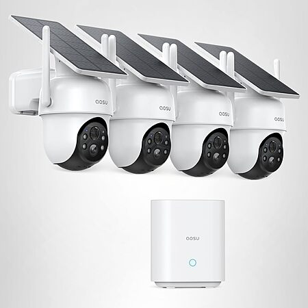Model: AOSU Security Cameras Outdoor Wireless, 4 Cam-Kit, No Subscription, Solar-Powered, Home Security Cameras System with 360° Pan & Tilt, Auto Tracking, 2K Color Night Vision, Easy Setup, 5G & 2.4G WiFi