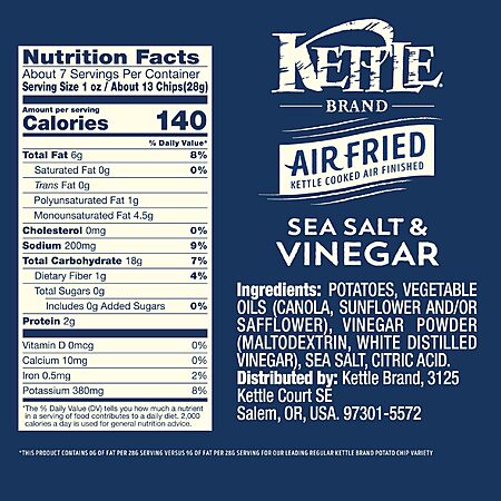 Model: Kettle Brand Potato Chips Air Fried Sea Salt & Vinegar Kettle Chips - 6.5oz