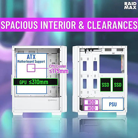 Spacious & Builder-Friendly Supports full-length 400mm GPUs, ATX/Micro-ATX/Mini-ITX motherboards, and has room for cable management and SSDs/HDDs.
