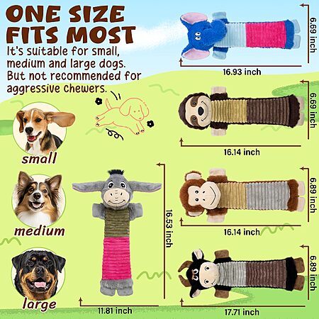 5-Pack No-Stuffing Crinkle & Squeaker Dog Plush Toys $12.49 + Free Shipping w/ Prime or on $35+
