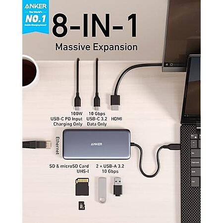 $35.99* | 8-in-1 Anker 555 USB-C Hub w/ 85w PD, 4k@60Hz HDMI, USB-C & 2x USB-A at Amazon