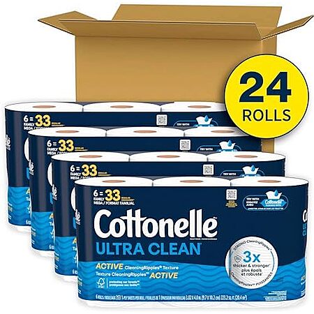 [SnS, AC] $48.28 | 2 × 24-Pack 353-Sheets Cottonelle Toilet Paper Family Mega Rolls (Ultra Clean) ($24.14 each) + $15 credit at Amazon