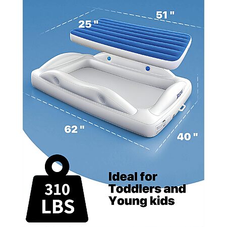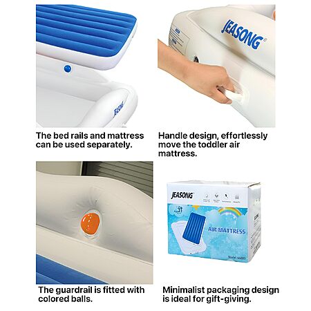 Jeasong Portable Inflatable Toddler Kid Bed w/ 4 Safety Sides, Removable Air Mattress and Electric Pump (Blue) $35.99 + Free Shipping