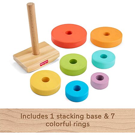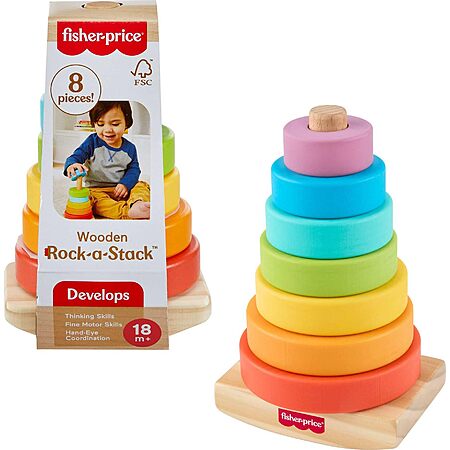 $9.49*:Fisher-Price Wood Toddler Toy Rock-a-Stack, 8-Piece Wooden Ring Stacking Activity for Fine Motor Skill Development Kids Ages 18+ Months at Amazon