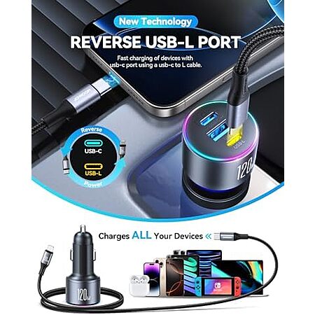 [Prime] $7.99* | Joyroom Up to 120W 3-Port Car Charger w/ 3.3' USB-L to C Cable at Amazon