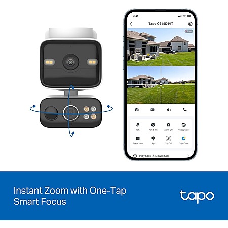 • SYNCHRONIZED SMART TRACKING: When enabled on the Tapo App, the pan/tilt lens automatically tracks motion detected by the fixed camera, delivering comprehensive surveillance so you never miss a moment.