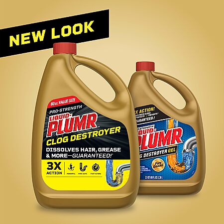 Clorox Liquid-Plumr Pro-Strength Clog Destroyer, Liquid Drain Cleaner, 80 Fluid Ounces (Package May Vary) $7.68