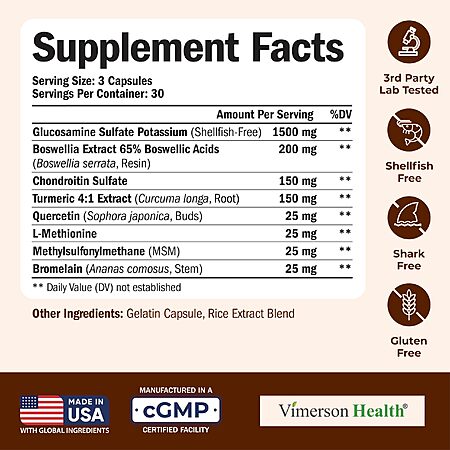 Model: Glucosamine Chondroitin MSM Turmeric Boswellia - Joint Support Supplement. Antioxidant Properties. Helps with Inflammatory Response. Occasional Discomfort Relief for Back, Knees & Hands. 90 Capsules