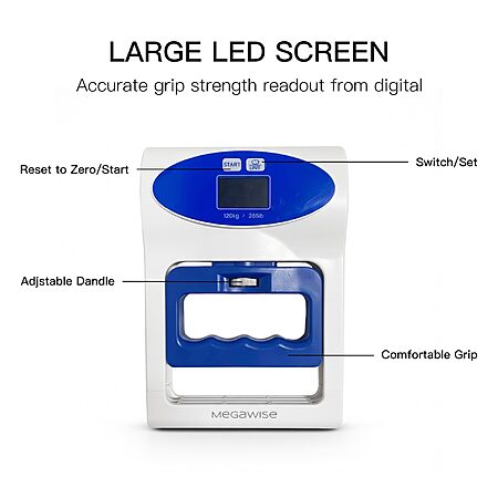 Amazon.com has MEGAWISE Grip Strength Dynamometer Pro - Digital Hand Grip Tester & Trainer, 265lbs/120kg High Precision Sensor, Home Fitness, gym (White) on sale for $16.71.