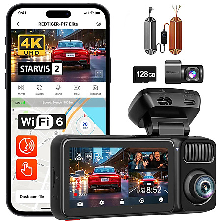 REDTIGER F17 Elite 4K 3 Channel Dash Cam w/ WiFi 6, Touchscreen & More $167 + Free S/H