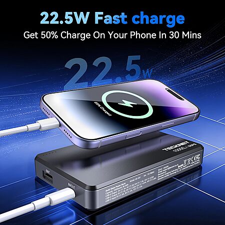 TECKNET 10,000mAh 22.5W Slim USB C Charger (SSPB Battery) $12 @ Amazon