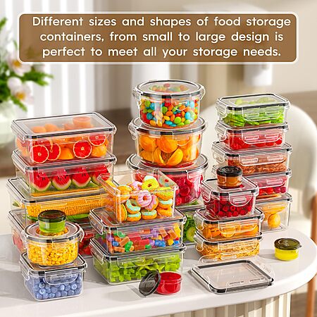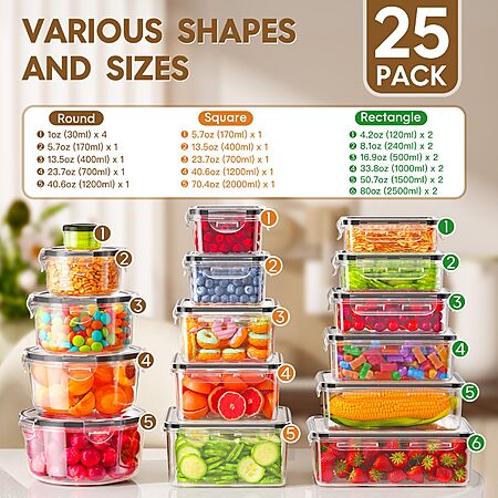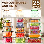 Food Storage Containers with Lids Airtight (25 Containers & 25 Lids), 100% Leak Proof Meal Prep Container $26.99 + Free Shipping w/ Prime at Amazon