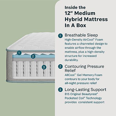 Beauty Sleep Midnight Slumber Medium 12" Hybrid Mattress: Twin $271; Queen $339; King $475 + Free Shipping