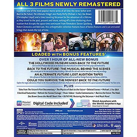 Trilogy Details: - Experience one of the most popular movie series of all time like never before with Back to the Future: The Ultimate Trilogy! Join Marty McFly (Michael J. Fox), Doc Brown (Christopher Lloyd) and a time traveling DeLorean for the adventure of a lifetime as they travel to the past, present and future, setting off a time-shattering chain reaction that disrupts the space-time continuum! From filmmakers Steven Spielberg, Robert Zemeckis and Bob Gale, this unforgettable collection features hours of bonus features and is an unrivaled trilogy that stands the test of time.