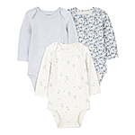 Keep baby cozy and cute with this 3-pack of long sleeve bodysuits from Carter’s Child of Mine featuring a mix of assorted colors and playful prints. Designed for everyday comfort, each bodysuit is made from soft fabric that’s gentle on baby’s skin. Snaps at the legs make diaper changes quick and easy, while the overlap shoulders allow for effortless dressing. Whether layered or worn on their own, these bodysuits are perfect for playtime, naptime, or on-the-go. A must-have essential for growing babies and busy parents alike. Each piece in this set is Standard 100 by OEKO-TEX, so it's certified clean for your little one. Material: 100% cotton Care: Machine washable Country of Origin: Imported Set includes: 3-pack long sleeve bodysuits Features: Assorted floral print and colors, long sleeve, snap closures, overlap shoulders, snug fit Standard 100 by OEKO-TEX
