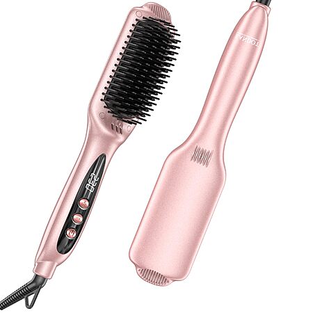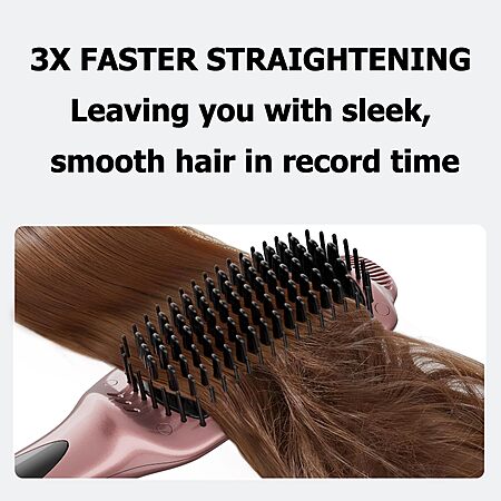 LANDOT Ionic Hair Straightener Brush for Smooth & Shiny Hair, Dual Voltage Ceramic Straightening Brush with 12 Adjustable Heat Settings Rose Gold $15.95