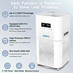 | Product Description: | Why choose our HEPA air purifiers? 1. We have our own factory and many sales channels. Walmart is one of our sales channels. Our factory sell nearly 1 million air purifiers a year and are a professional seller in this market, worthy of your trust. 2. We have professional and complete technical and safety certifications, as well as excellent and satisfactory after-sales service. We are not just make money, we also hope to work with all humanity to maintain the earth's environment that we rely on for survival. 3. This air purifier can purify 2500 sq.ft in one hour. And it can effectively purify smoke dust pet hair odors in the air. 4. We provide a 3-year quality assurance for your air purifier. You can ask us any questions at any time, and we will answer them within 24 hours, including holidays. 【How to buy replacement filters?】 Search and buy directly on Walmart. 1. Original Filter, item id is 1861810624. 2. Pets Filter, item id is 1829151495. 3. Toxin Absorber Filter, item id is 1410660785. 4. Wildfire & Smoke Fumes Filter, item id is 1959673156. Key Features: 1. [Efficient Air Purifier] This CADR of 247CFM/420 m³/h air purifiers for bedroom equipped with a 4-Stage filtration system,can clean up to 2500 ft² 1 time per hour, 500 ft² 5 times per hour, effectively remove 99.97% dust, smoke, dander, pet hair, cooking odor, pollen as small as 0.3 microns around your living space. 2. [1-12H Timing Function & Child Lock] This air purifier for pets has smart timer function allows you to set 1-12H timer based on your demands.This true HEPA air purifiers for dorm room also comes with child lock function to avoid any unintentional touch by little kids or pets. 3. [Quality Assurance] This air purifiers for smoke odors is FCC certified, CARB approved ETL Listed and 100% OZONE FREE, totally environment friendly. Besides, we provide 3-Years Warranty & Lifetime Service Support. 4. [PM2.5 Air Quality Real Time Digital Display] This 360° air intake air cleaner built-in sensitive infrared air quality sensor, can clearly display how it works to purify air around you with its color indicator and digital display. 5. [Intelligent Auto Mode] This air purifiers for home large rooms can automatically adjust the fan speed based on the surrounding air quality. At the same time, you can learn about your current air quality situation through the values on the control panel. 6. [Quiet Sleep Mode] This portable large room air purifier equipped with the latest brushless motor. Start sleep mode with one click, and it is only 22dB. In addition, all LED lights will go out unless the sleep mode indicator light. Even if placed in the bedroom, you will not worry about disturbing your sleep, our home bedroom air purifiers can fully ensure your sleep quality. 7. [4 Fan Speed] The air cleaner for home has 4 rotational speeds, and you can adjust the wind speed by touching the fan button on the control panel. At the same time, you can control it through the remote control. Meet your needs for remote operations. 8. [Smart Filter Change Reminder] Our portable air purifiers are set up with a 3000H HEPA air filter replacement reminder. The indicator light will flash when the purifier has been in use for 3000H. It is recommended to replace your filter every 6-8 months depending on the use and air quality. (To ensure the good effectiveness of the product, we recommend that you use our official filter). If you want to purchase them, please contact us, we will give you some advise. 9. [Must See] The power adapter, manual and remote control are all inside the filter, please rotate the bottom of the air purifier to take out the filter before usage to get all the accessories. 10.[ What's Included] 1* Air Purifier with Filter, 1* Power Adapter, 1* Remote Control, 1* User Manual |