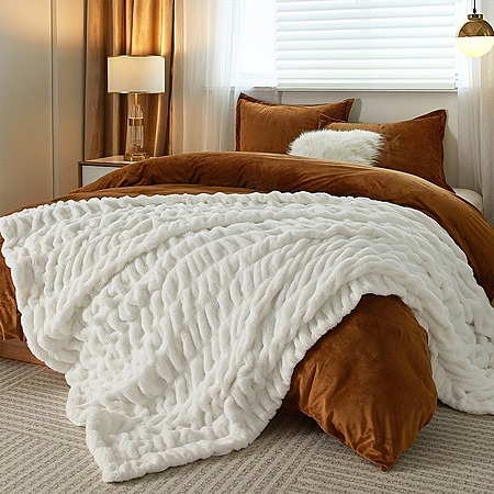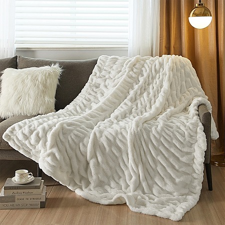 50" x 60" Throw PHF Fluffy Ruched Faux Fur Blanket (Gray or White) $13.99 + Free Shipping w/Prime or $35+