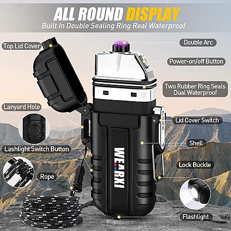 WEARXI Dual Arc Windproof Rechargeable Electric Lighter (Black) $5.99 + Free Shipping w/ Prime or on $35+