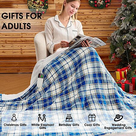 60" x 50" Octrot Flannel Sherpa Electric Heated Blanket (Blue Plaid) $18.19 + Free Shipping w/ Prime or on $35+