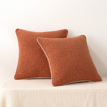 Amazon Basics Boucle Throw Pillow Covers for Couch, Living Room, Orange Home Decor with Hidden Zipper, Brown, 24×24in, Pack of 2 $10.99