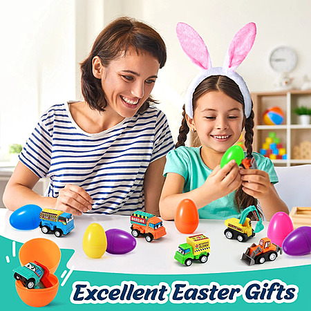 Ayieyill 12Pcs Prefilled Easter Eggs - Toy Filled Easter Eggs Filled with Pull-Back Construction Vehicles
