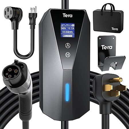 Tera Electric Car Charger Portable: Level 2 Level 1 J1772 EV Charger 16A 10A 8A 110V 240V Charging Station Indoor Outdoor ETL Certified NEMA 14-50 Plug NEMA 5-15 23FT Cable P02