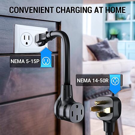 About this item- Supports Level 1 & Level 2: The EV charger comes with complimentary adapters for NEMA 5-15P in the package. Paired with a 23ft cable, you can effortlessly utilize your EV charger with standard household sockets, dryer outlets, or air conditioner outlets. Additionally, the electric vehicle charger's voltage will automatically adjust based on the actual voltage for safety.