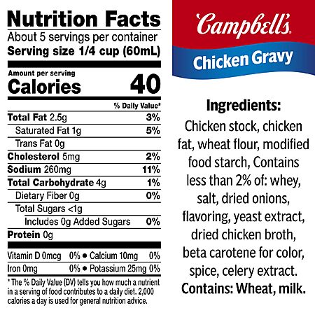 - Savory gravy made with real chicken stock and expertly seasoned for a familiar homemade flavor that adds a touch of comfort to your cooking