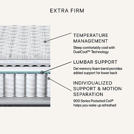 - 900 Series Beautyrest Pocketed Coil Technology: Provides flexible support precisely where it is needed and isolates motion between two sleepers.