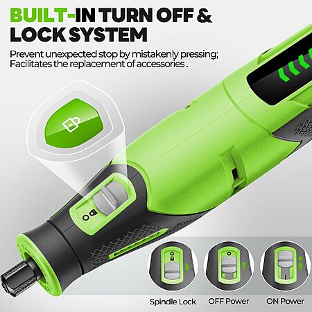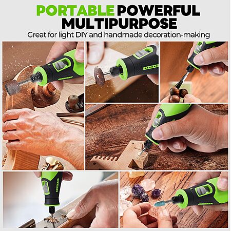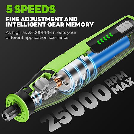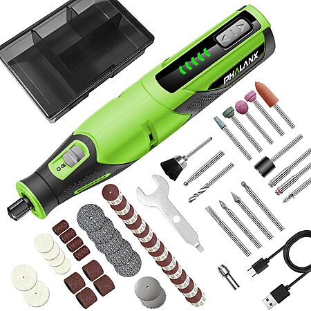 PHALANX Cordless Rotary Tool with 64 pcs Accessories, 2500mAh 4V Li-ion Battery, Type-C Fast Charging (Green) - $14.99