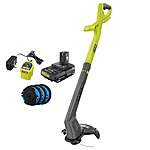 RYOBI ONE+ 18V 10 in. Cordless Battery String Trimmer/Edger 2.0 Ah Battery and Charger kit with ONE+ 0.065 Spool (3-Pack), $69.97, FS, Home Depot