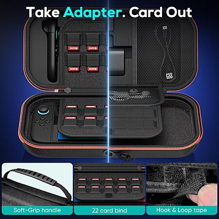 Auarte Carrying Case for Nintendo Switch w/ Adapter and for Joy Cons Storage, Travel Case with 22 Game Card Storage $15.99