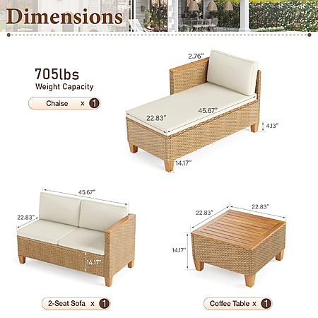 MF Studio 3-Piece Patio Furniture Conversation Set, All-Weather Wicker Outdoor Sectional Sofa Set with Table & Cushions, Beige $259.99