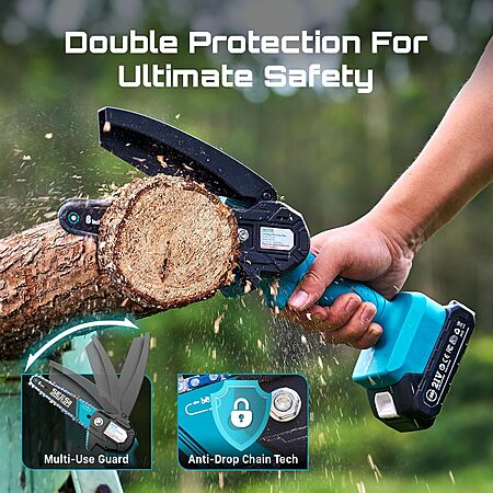 6" Seesii Mini Cordless Electric Hand Chainsaw w/ 2x 21v Batteries & Accessories (CH500) on sale for $37.97 - 48% off when you apply promo code