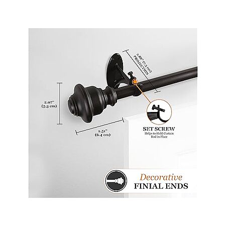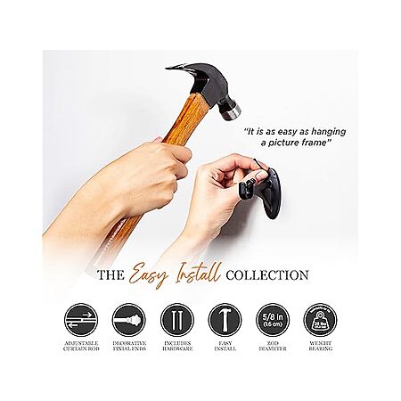 Kenney Finn 5/8" Fast Fit Easy Install Decorative Window Curtain Rod $10.99