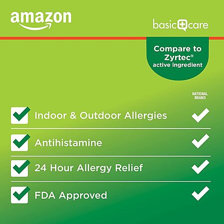 30-Count Amazon Basic Care 24-Hour Relief All Day Allergy Cetirizine Hydrochloride Tablets (10mg) $2.38 w/ S&S + Free Shipping w/ Prime or on $35+